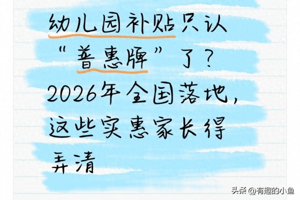 其实这波改革的核心,就是"把钱花在咱家长身上",让补贴真正帮到普通家庭,不用再担心"补贴没落到实处"。以前可能有家长分不清哪些补贴能领、咋领,现在简单了,认准"普惠园"就行。大班免费是基础,符合条件还能叠加工困难补贴。要是想提前准备,现在就能查当地教育局官网,搜"学前教育普惠补贴",看看自家娃的幼儿园是不是普惠园、能免多少;开学前也多跟老师确认下申请材料,别到时候漏了户口本或居住证。毕竟这政策不是临时的,2026年全国落地后会一直推行,早弄明白早享实惠,也能少为育儿开支犯愁,让娃开开心心上幼儿园。