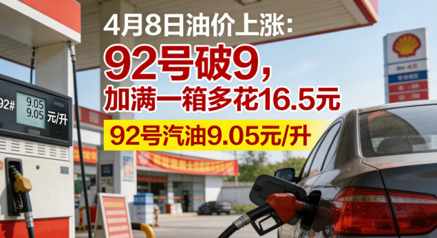 4月8日零点起,国内成品油迎来年内第六次上调,92号汽油多地已突破9元/升。距离上一次调价仅过去了15天,一箱"8字头"的油,转眼间就迈上了"9字头"台阶。