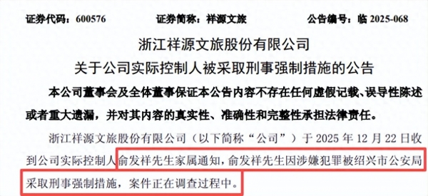 祥源系理财产品暴雷多日后浙江出手了,理财产品发行方、担保方以及发行平台浙金所关联方背后的实控制人--浙商大佬俞发祥因涉嫌犯罪被属地公安部门采取刑事强制措施。