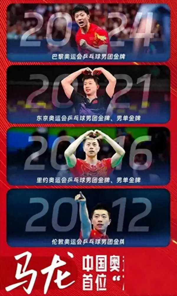 连巴黎奥运会的媒体手册都给他戴上了"乒乓球史上最伟大的球员"的高帽。这可不是吹牛皮,马龙用实际行动证明了自己的实力。