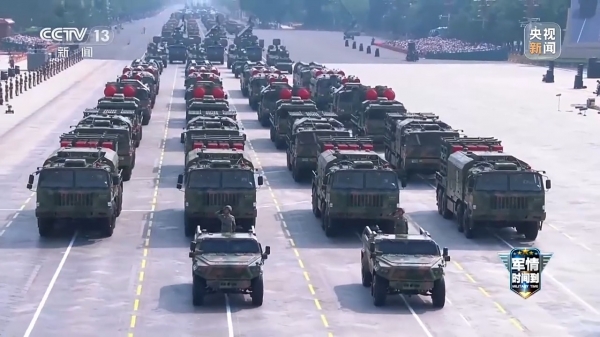 反无人机方队 赵韧:反无人机方队是由陆军和空军混合编组而成,此次我们共有5型17辆装备参阅,这些装备都是我国自主研制生产的,主要是基于模块化、开放式结构,综合集成了"弹、炮、光、电、波"等新式作战手段,形成具备多维度、全方位、智能化的反无人机作战体系。这些防空武器我们也称之为新式的反无的"铁三角":