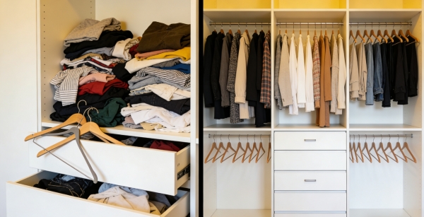 过年整理衣柜,遵循"一年未穿,直接舍弃"的原则,不合身、过时、起球变形、洗不干净的衣服,该捐捐、该扔扔。空出衣柜空间,新年穿新衣,心情都敞亮,也不用每天翻找衣服弄得乱糟糟。