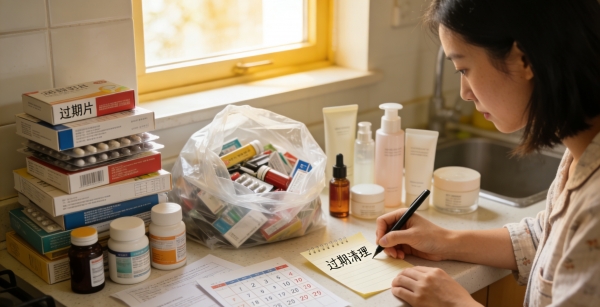 【配图4:过期药品、护肤品摆放/清理场景图】