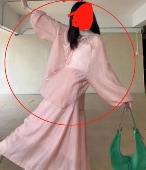 这个老师在网上所发布的照片,可以从侧影就能够看清楚里面,因为这套衣服的面料很轻薄,虽然是长袖,但是在阳光下看起来并不是那么合适。