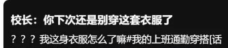 这一套衣服在她看来并没有太大的问题,可是却引起校长的注意,校长认为她的穿着不是很得体。