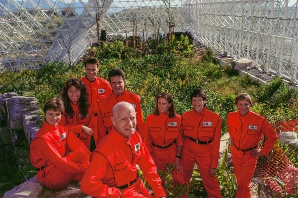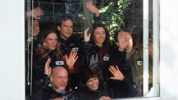 时间来到1991年9月26日,4男4女8名参与到实验的科研人员,身穿着太空制服,首次进入了"生物圈2号"。