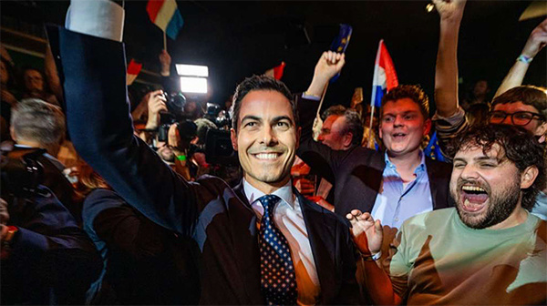荷兰六六民主党领袖罗布·耶滕与支持者一起庆祝。 社交媒体