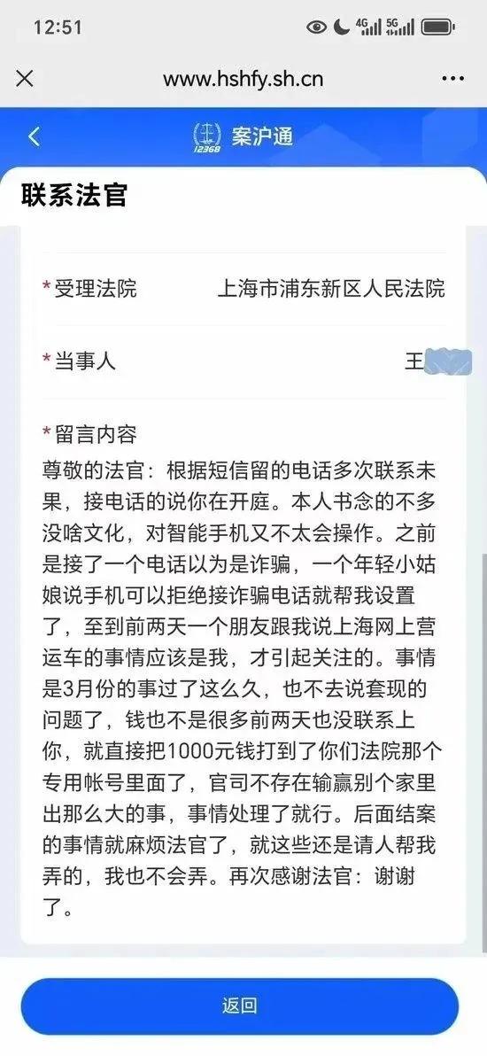 7月16日,他没出庭,不是逃避,而是以为接到的是诈骗电话,所以没当真。直到这件事发酵大了,他才意识到这件事似乎跟他有关系。了解情况后,王姓司机将1000元打款至法院住专用账号,让法院还给小郭家人。