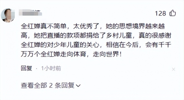 直播结束热度还没散,全红婵就在社交媒体上晒出了一张证书--她把直播收到的所有打赏一分不剩全部捐给了中国乡村发展基金会,指明要给乡村的孩子们用。基金会还特意给她颁了个"公益积极分子"的称号。
