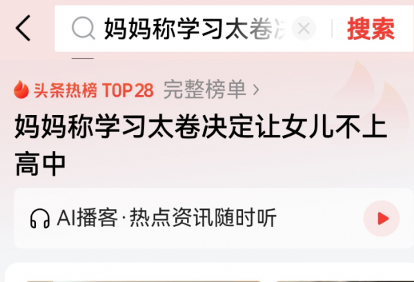 然而,舆论呈现出严重的两极分化态势。支持的人认为,这是对抗"内卷"的理性之举,尊重个体差异和孩子的身心健康至关重要;质疑的人则担心职高环境不佳,还指责妈妈不负责任。面对质疑,妈妈含泪质问:"她只是学习不好,不是不会做人。"这番话也引发了大家对教育焦虑和学历歧视的深刻反思。