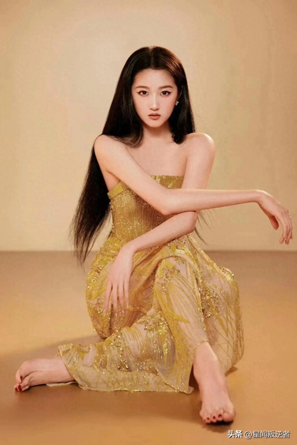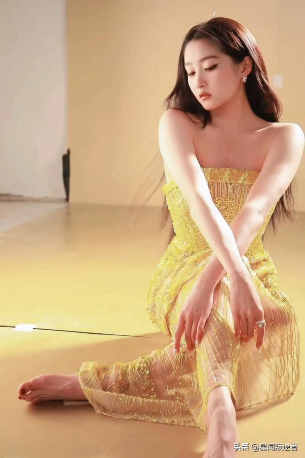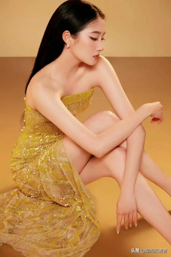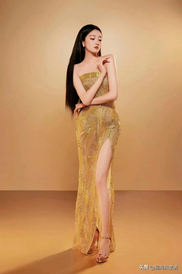 远远看过去,那裙子就像把熔化的黄金泼在了身上,随着她每一步走动,光线在裙面上流淌,波光粼粼的,高级感拉满。但最杀我的还得是那双逆天2米大长腿!裙子的高开叉设计,让她的腿在摇曳生姿中若隐若现,线条又长又直,白到发光,真·腿精本精!