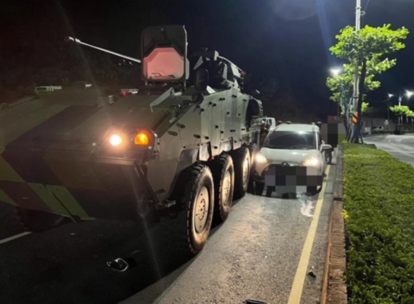 没有最离谱,只有更离谱,当晚,新北市八里区还发生了一起交通事故。一辆白色小客车在昏暗的路段与一辆陆军CM-34"云豹"装甲车发生擦撞,虽无人受伤,但白色车辆右侧损毁严重。据报道,这起事故的原因是装甲车驾驶员在昏暗路段未注意到旁边的车辆,向左闪避异物时不慎发生擦撞。不管事情大小,这起交通事故确实让台当局脸上有些挂不住。
