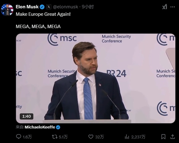 早在今年2月,美国副总统万斯就在慕尼黑安全会议发表演讲,毫不客气地痛批欧洲,被媒体认为是向欧洲发起了"残酷的意识形态攻击"。他当时表示,欧洲面临的真正威胁并非来自俄罗斯或中国等外部势力,而是欧洲自身内部对其"最基本价值观"的背离。