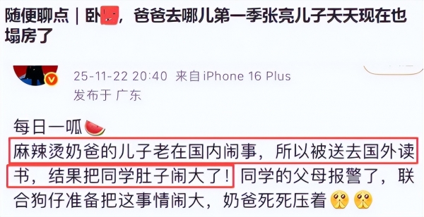 可这次博主的爆料,却再次引起了网友的热议,甚至有知情人士爆料,张亮之所以把天天送到国外,就是因为他总在国内闹事。