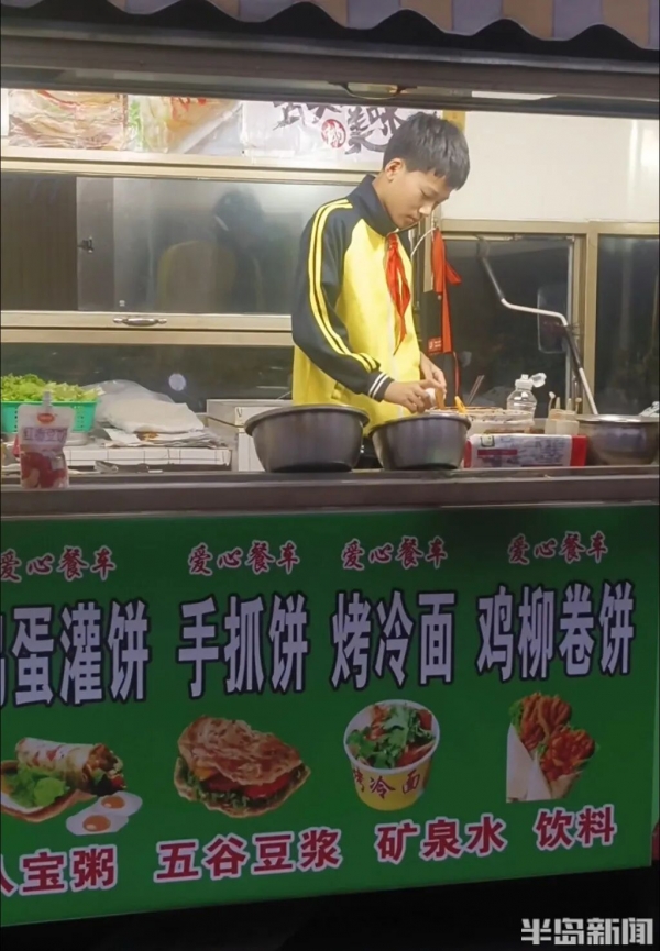 凌晨4点,青岛街头,13岁男孩陪残疾父亲摆摊卖早餐,多年来风雨无阻