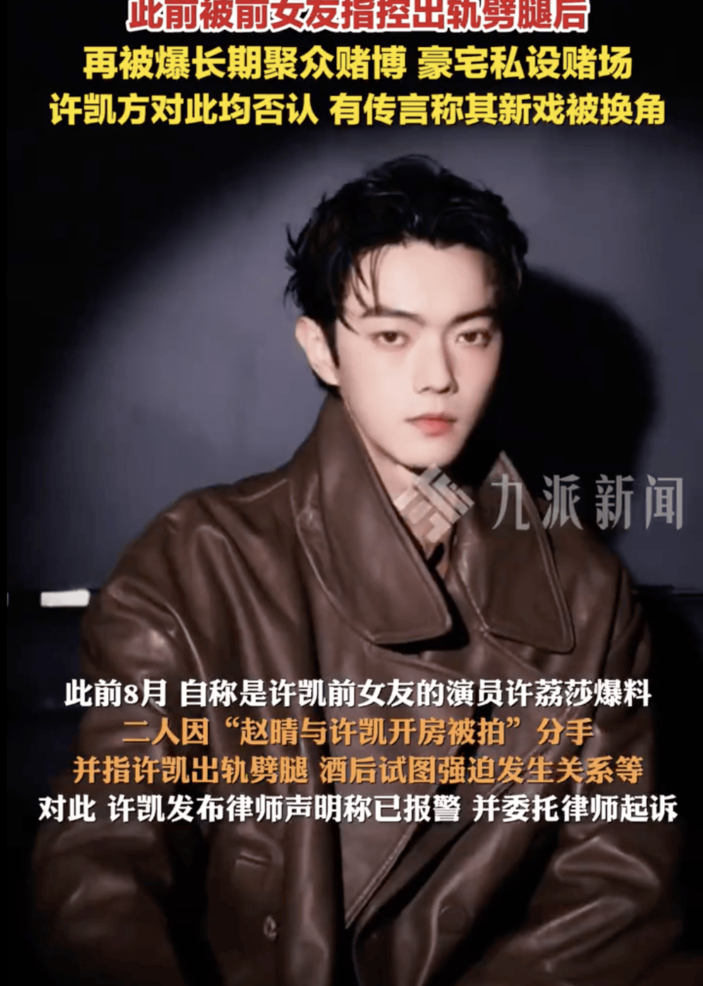 今年8月,自称许凯前女友的演员许荔莎曾公开发文,指控其存在出轨等不当行为,相关话题一度引发舆论热议。对此,许凯方面迅速采取法律手段,不仅发布律师声明否认全部指控,并表示已就此事报警处理,同时委托律师启动诉讼程序。