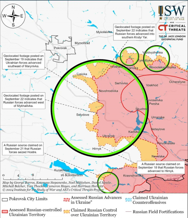 截至当地9月22日下午3点,俄军在红军村方向分为1个主要进攻方向(西侧),以及3个次要进攻方向(北侧和南侧),但是不管在哪个方向,俄军的地盘正在越来越大。