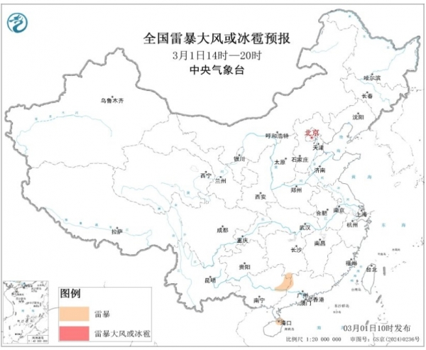 此外,今明两天,在湖南南部、广西中东部、广东北部、海南东北部等地的局地将有雷暴。