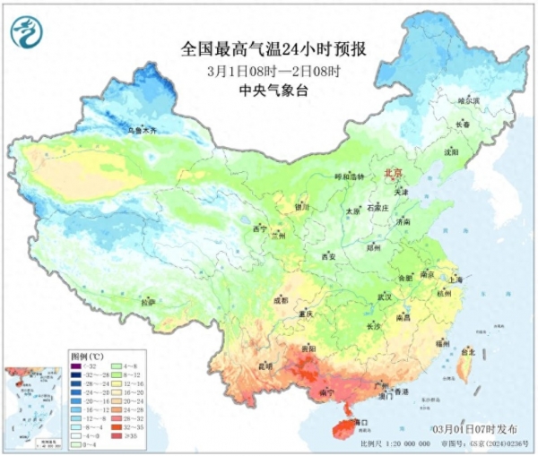 眼下,我国南北气温差异巨大,海南昌江直冲35度,百色也高达33度,而北方多地气温偏低,内蒙古额尔古纳最高零下18度,南北温差超50℃。不过随着3月第一轮冷空气的确定,南北的冷热反差将会缩减,3月3日也就是元宵节当天,新冷空气将自北向南影响我国多地,北方多地气温下降10度以上,南方降幅在5至8度之间,南方一些早入春的城市也会感受到春寒料峭,不过在此之前,气温会先冲高再降。而大范围雨雪还将持续不停,北方暴雪中心锁定,南方暴雨不断南压,一轮接一轮。