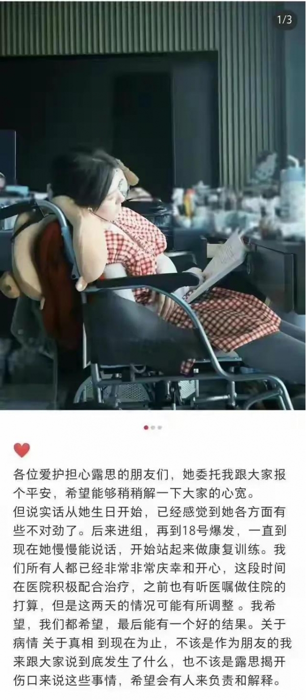 2024年12月27日,一张赵露思坐着轮椅吸氧的照片,像长了翅膀似的在网络上到处传。照片里的她,脸看上去特别憔悴,整个人虚弱得缩在轮椅上,感觉轻轻一阵风刮过来,就能把她吹倒。这张照片一下子就把网友们的好奇心勾起来了,大家都在琢磨,平常看着总是阳光开朗的赵露思,咋就变成这副模样了呢?就在大家猜得热火朝天的时候,12月31日,赵露思的朋友在得到她同意后,抖出了一个超级惊人的猛料,把大家惊得下巴都快掉地上了。这背后到底藏着啥秘密呀?咱们一起来揭开这神秘的面纱。