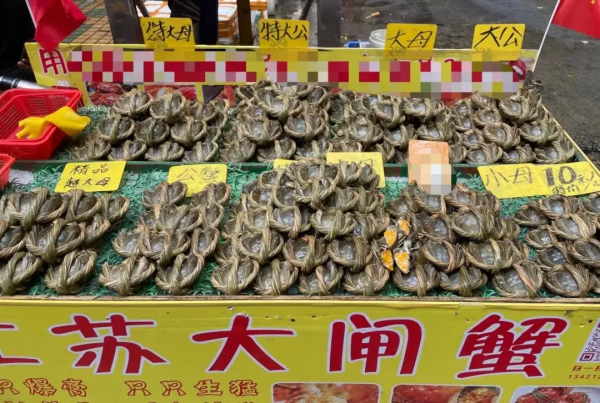 此外,记者还发现,一些专门销售大闸蟹的移动小摊在价格上更具优势,相较于固定摊位更为亲民。