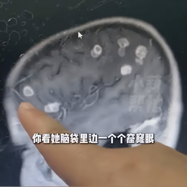 经检查,医生在玲玲的脑部影像上看到了触目惊心的一幕--20多个空洞散布在大脑组织中,就像被什么东西啃食过一般。