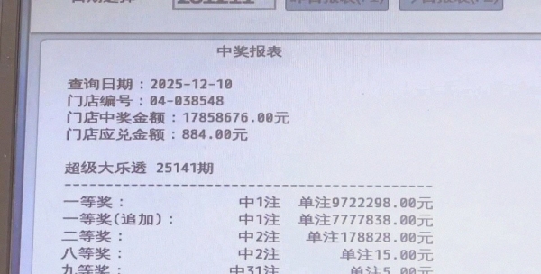 3元换来1750万,浙江嘉善西塘的一张单式追加票在12月10日晚击中体彩超级大乐透追加一等奖
