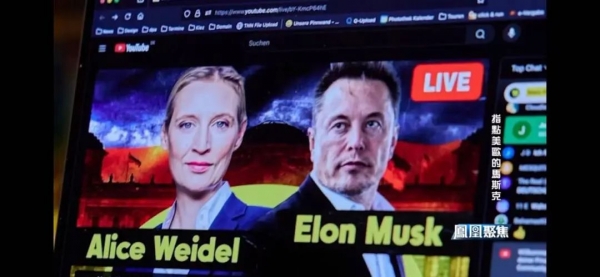 2月23日,德国将进行大选。目前,魏德尔所在的德国选择党在民调中排名第二,约有20%的支持率。这是一个反建制派的政党,与不走寻常路的马斯克趣味相投。