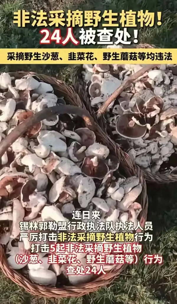 继河南周口两大老爷们逮44只壁虎被警方请到局子里喝茶的事后,内蒙古因非法采摘野生沙葱,韭菜花,野生蘑菇被执法队抓住喜提热搜。