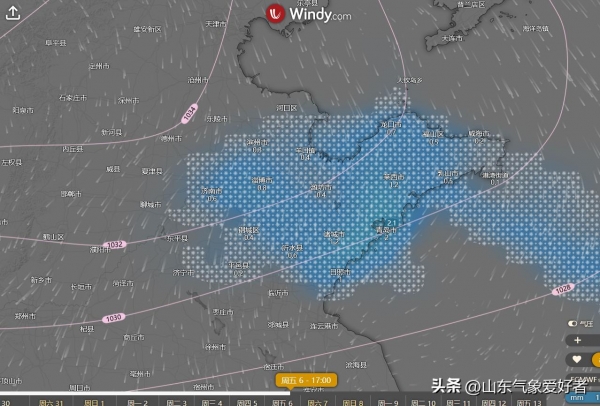 7日前后随着冷空气的影响,济南最低气温将快速下降至-10℃,最高气温也仅仅只有1℃。结合各大模型的预测情况来看,此轮冷空气影响期间水汽条件依旧并不太好,EC模式近几次的预报也是反复无常,一会预测有雪一会预测没雪的。GFS模式仍然是坚持认为我省会出现大范围的降雪,下图是该数值模型预测的6日下午降雪形势,可见我省大部地区被降雪覆盖。