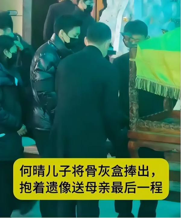 在告别仪式上,这个大男孩身穿素黑外套,独自抱着母亲的骨灰盒,神情悲痛却异常镇定。