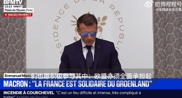 法国总统埃马纽埃尔·马克龙表示,"格陵兰岛不出售,也不能被夺走",并强调只有格陵兰人才有权决定自己的未来。 他与格陵兰岛总理詹斯·弗雷德里克·尼尔森和丹麦首相梅特·弗雷德里克森站在一起,用格陵兰语和丹麦语发表了部分讲话。 马克龙表示,法国与丹麦王国站在一起,并补充说,北极防御需要加强。