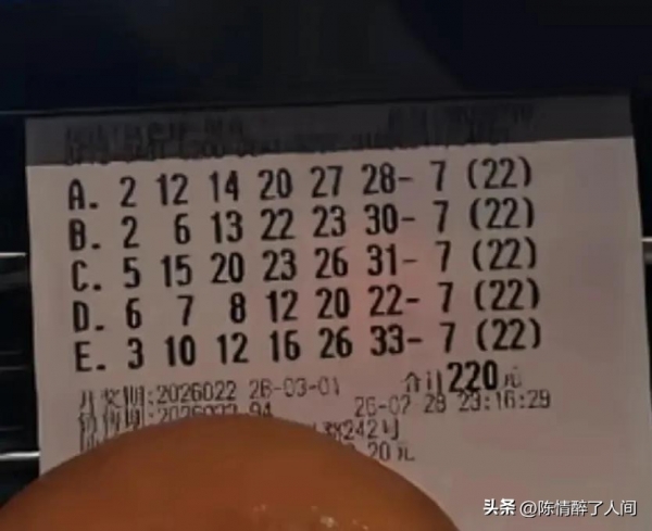 在今晚的晒票中,其中5组22倍单式、3组万元复式,接下来让我们一起来看看他们的中奖情况:其中5组22倍最高命中了2+0,独蓝失败,万元复式蓝球命中2+1,一起来欣赏下。