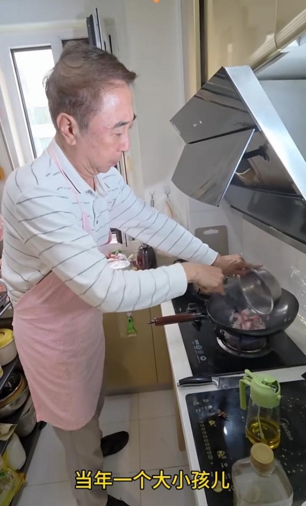 冯巩把外套往椅背一甩,围裙一套,锅铲一抡,67岁的人动作比年轻人还利索。