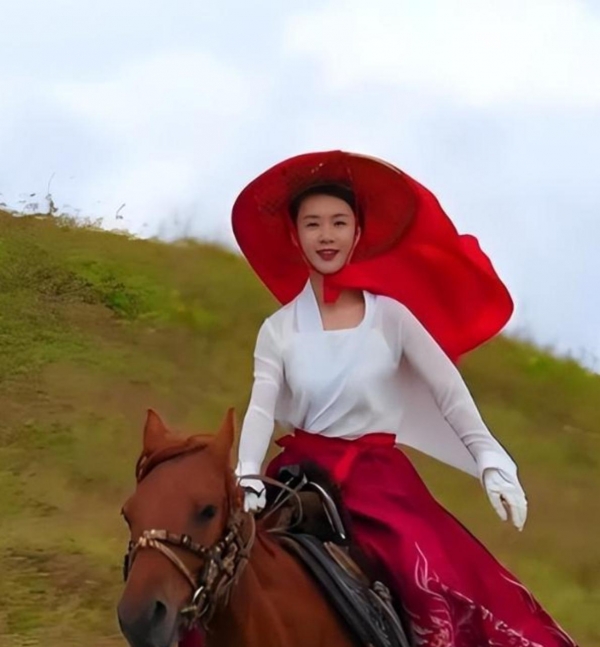 再看贺娇龙,这事儿就更魔幻了,她是因为"马"走红的,那个红衣策马的视频,让她成了互联网顶流。