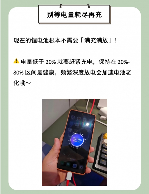 手机是我们生活中不可或缺的工具,而电池就是它的"心脏"。别再让错误的充电习惯,伤害了我们的"心脏"。从今天开始,试着把充电习惯改成"充到80%就拔",你会发现,手机的续航能力和寿命,都会有明显的提升。