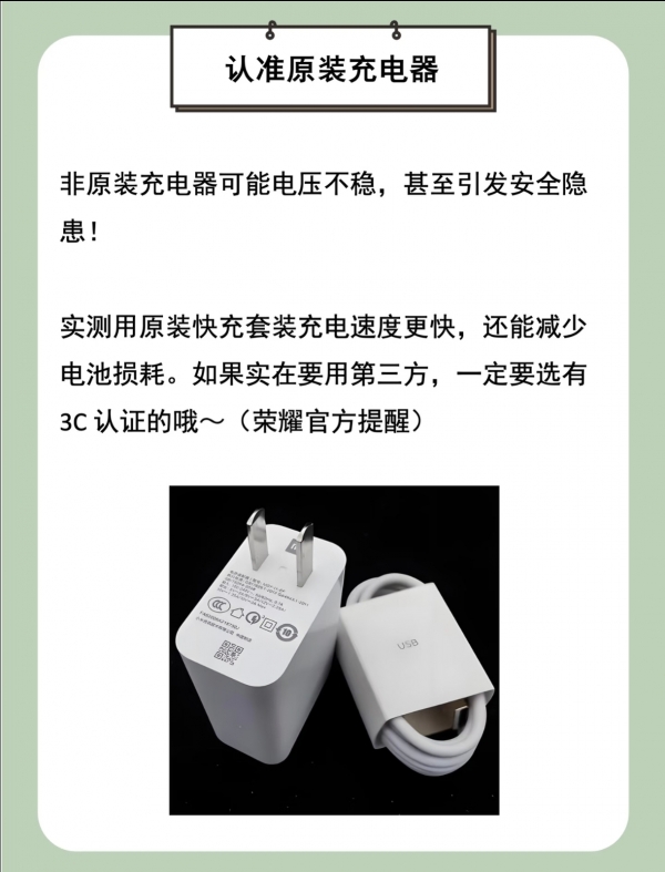 正确的做法是:使用原装充电器或经过认证的第三方充电器,避免使用地摊上的廉价产品。