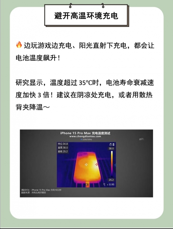 3. 避免高温环境:不要在阳光直射、高温车内等环境下充电,也不要边充边玩高负载应用。