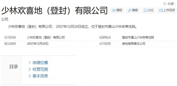 2007年,少林欢喜地(登封)有限公司成立,这家企业直到现在也是少林寺商业版图的重要一环。