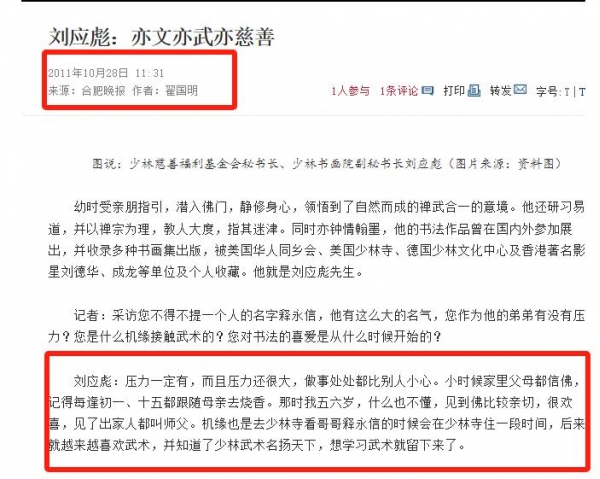 而早在2011年人民网等其他媒体的报道中,刘应彪(法名释永盛)这个名字也出现过几次!