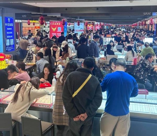 2月1日周日,黄金交易市场休市,金价行情不变。2月1日下午,记者来到深圳水贝金座负一层,下扶梯时已看到市场人头攒动,有人紧急抛售自己手上的囤货;有人信奉黄金长期持有,选择逢低买入。
