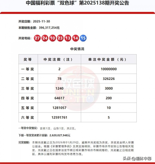 红球:10、13、14、23、24、27(按从小到大排序);蓝球:15。本期开出号码呈现 "连号扎堆、三区偏热" 的特点,二区(12-22)和三区(23-33)各现一组连号,一区(01-11)仅出 1 个红球,蓝球 15 则是近期冷号突然回补,为近期少见的出号分布。