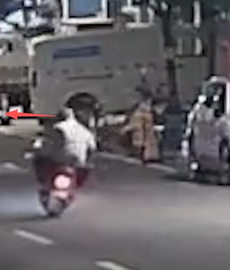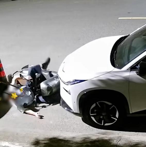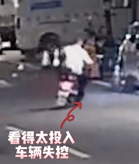 关键他还在骑着车向前走,一边加油门一边扭着头看人,当然就顾不上看路了。