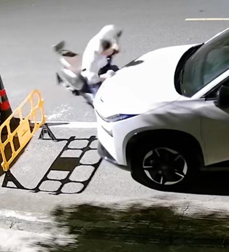 结果就是这分神的功夫,让男子失去了对车的控制,车不朝正前走了,反而拐了个弯。