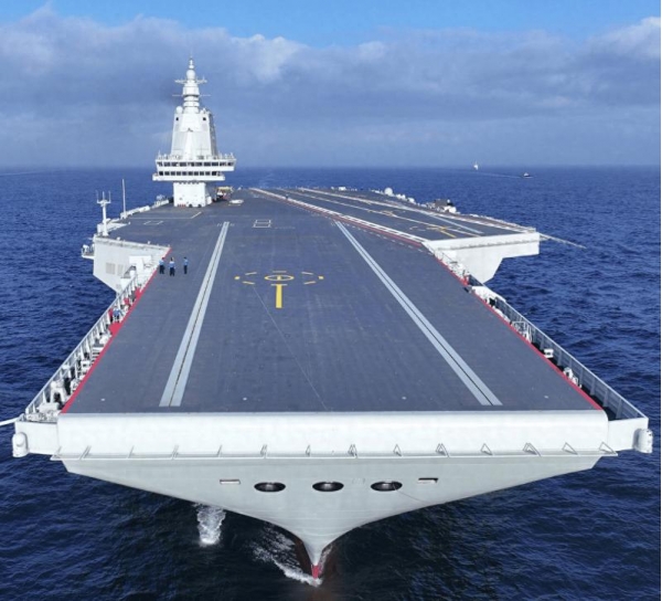 试航中的003型航母"福建舰"高耸的舰岛和超大的甲板面积无不体现着威严