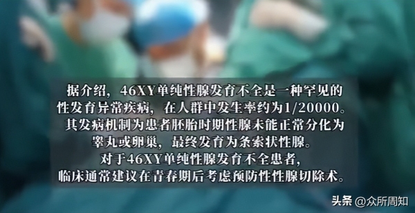 医生赵璟提醒:此疾病发生率 1/20000,患者性腺恶变风险达 20%-30%。