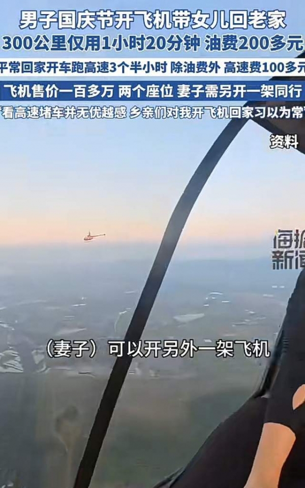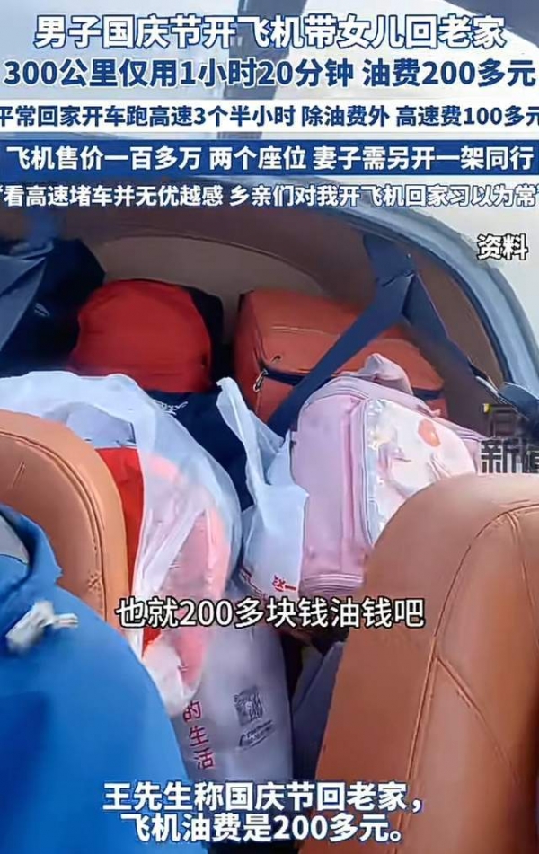 一家三口国庆节开2架飞机回老家:300公里仅用80分钟,油费200多元,看高速堵车没优越感