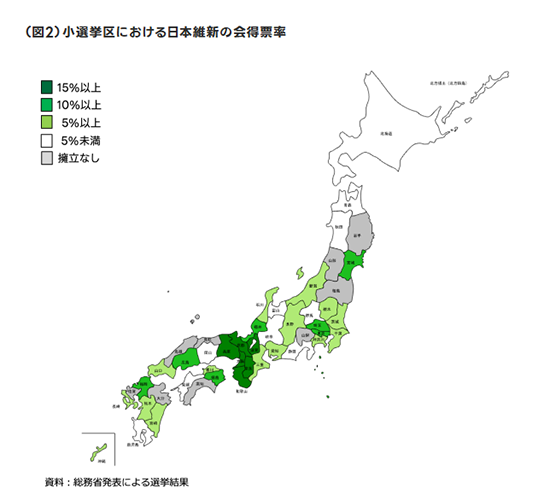 日本维新会在第50届国会选举中的得票率集中在关西 日本经济新闻