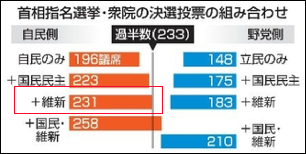 由于日本维新会是以关西地区为政治根基的全国性极右翼政党,长期主张关西区域自治与大阪建都计划。因此,若维新会与自民党展开合作,其合作条件很可能包括要求自民党在关西地区的部分小选区议席让渡给维新会,以换取后者在首相提名选举中的支持。