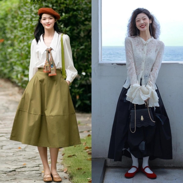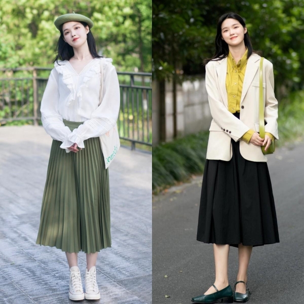 宽松程度适中的裙子可以巧妙遮盖身形问题,但如果裙子宽松过头,失去了基本的剪裁与设计感,则容易导致整体形象的臃肿,缺乏美感。